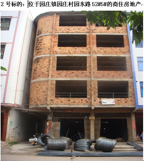 6月22日拍卖公告:园庄镇园庄村园东路52#5#的框架商住房地产 |